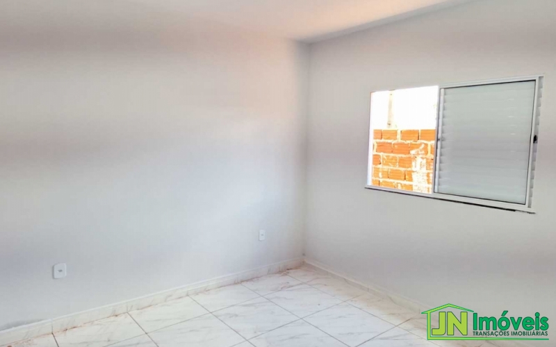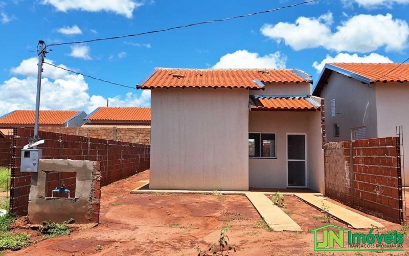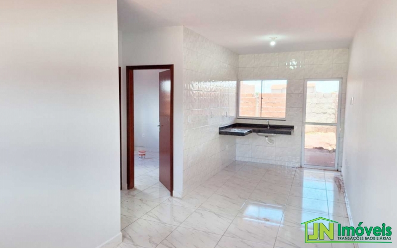 Casa nova com 2 quartos, sala, cozinha, banheiro, área de serviço e quintal.