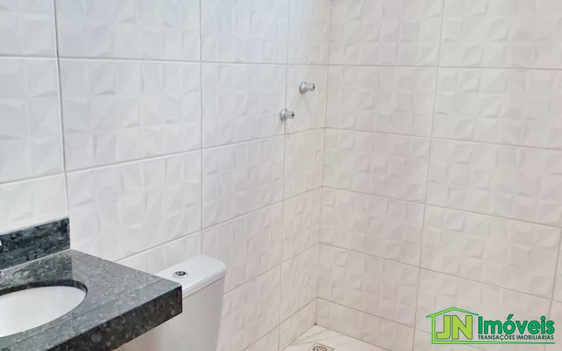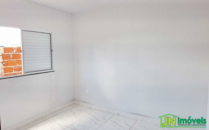 Casa nova com 2 quartos, sala, cozinha, banheiro, área de serviço e quintal.