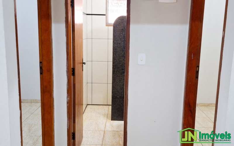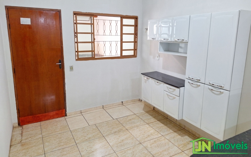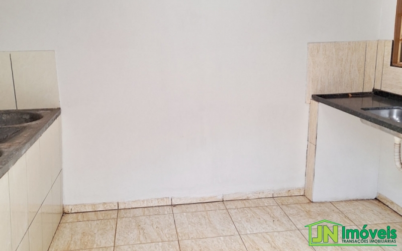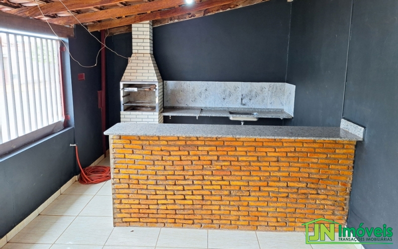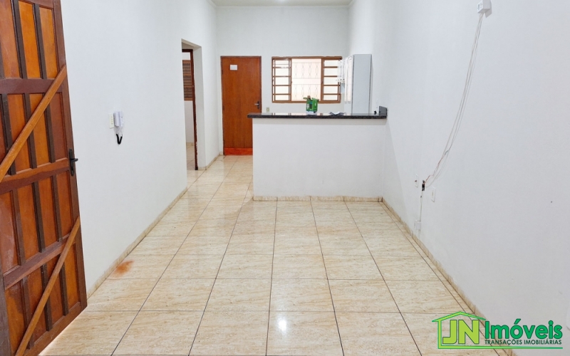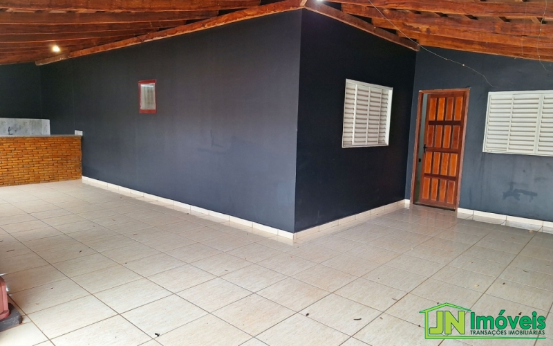 Casa com 2 quartos sendo 1 suíte com ar condicionado, sala, cozinha com armário, área de serviço, garagem e área com churrasqueira.