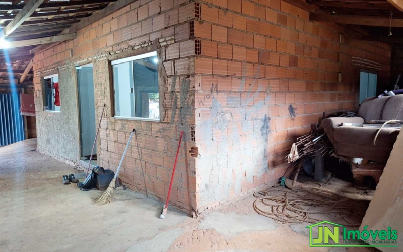 Casa à venda no Bairro São João com 2 quartos, sala, cozinha, banheiro, área de serviço, dois portões pra garagem e varanda em U.