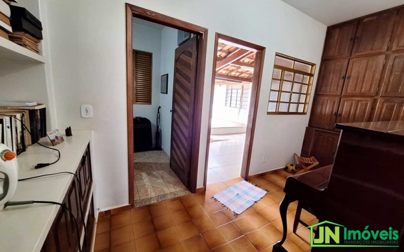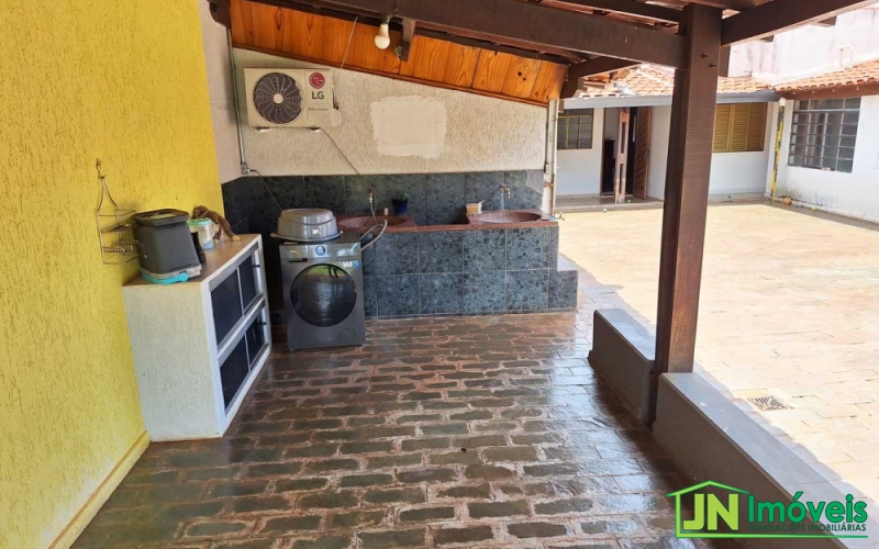 Casa à venda no Jardim Tropical com 3 suítes com armários planejados, sala, cozinha, área de serviço, banheiro social externo, despensa, escritório, quintal e garagem para 3 carros.