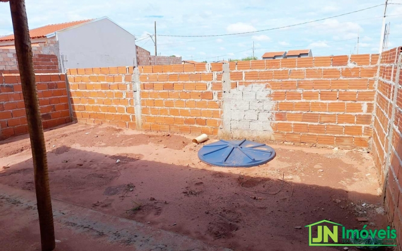 Casa no Jardim Europa com 2 quartos, sala, cozinha, banheiro, área de serviço e quintal.