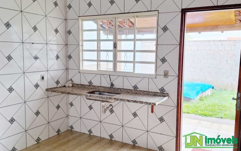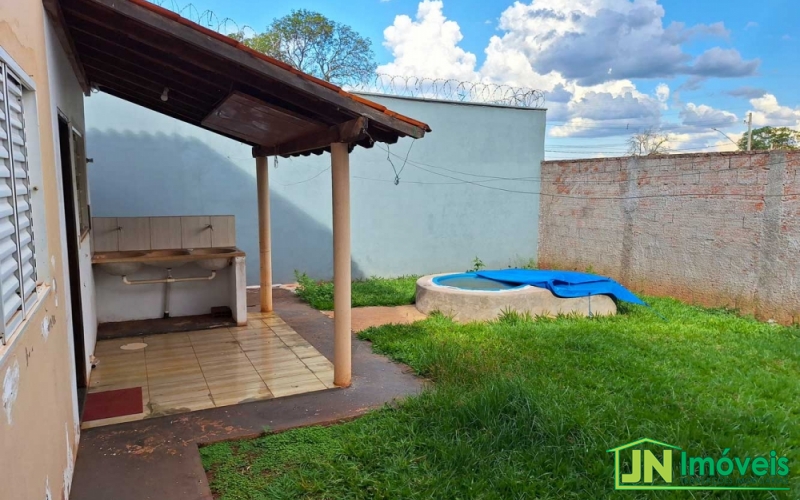 Casa com 3 quartos, sala, cozinha, banheiro, área de serviço, quintal, piscina e garagem.