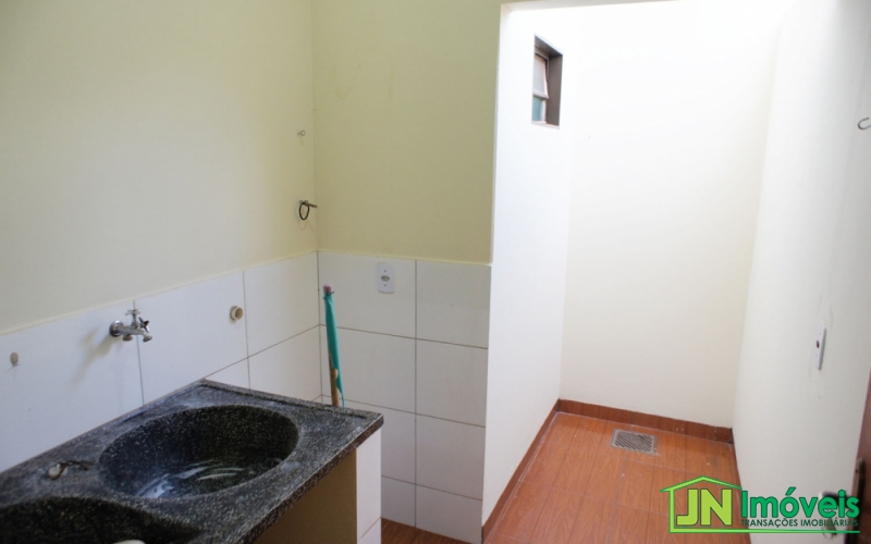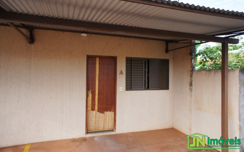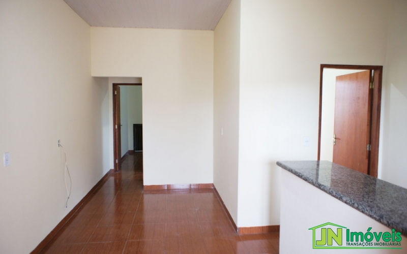 Kitnet para alugar no Centro com 1 quarto, sala, cozinha, banheiro, área de serviço e garagem coberta para 1 carro.
