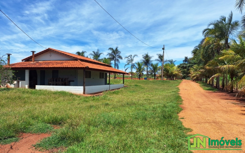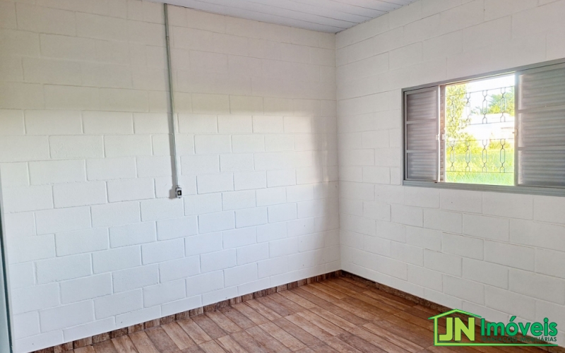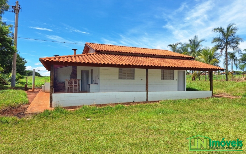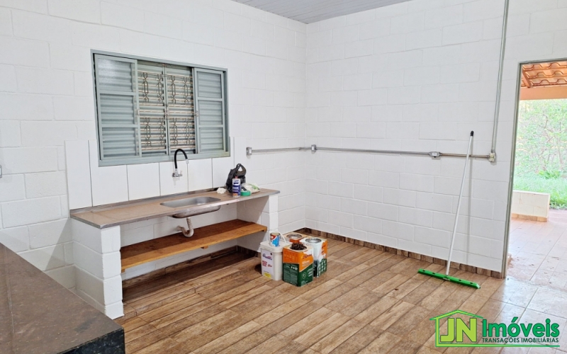 Rancho para alugar na saída do Bairro Caiapó, com 2 quartos, sala, cozinha, 2 banheiros, área de serviço, área gourmet com churrasqueira e forno à lenha e garagem coberta para 2 carros.