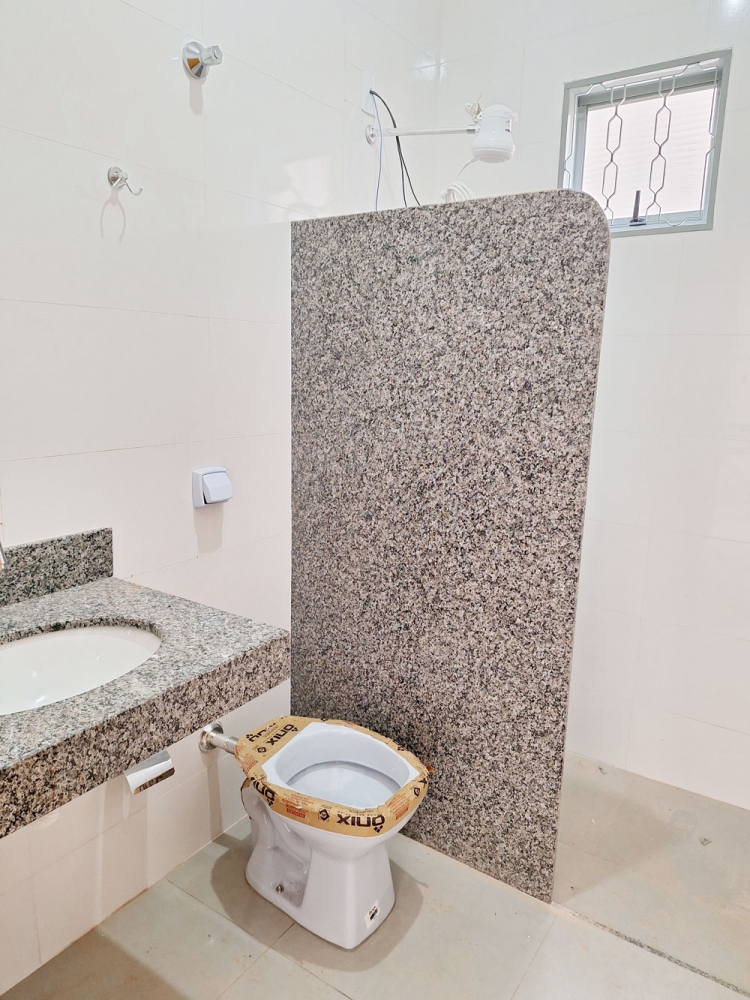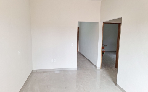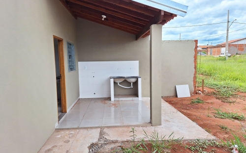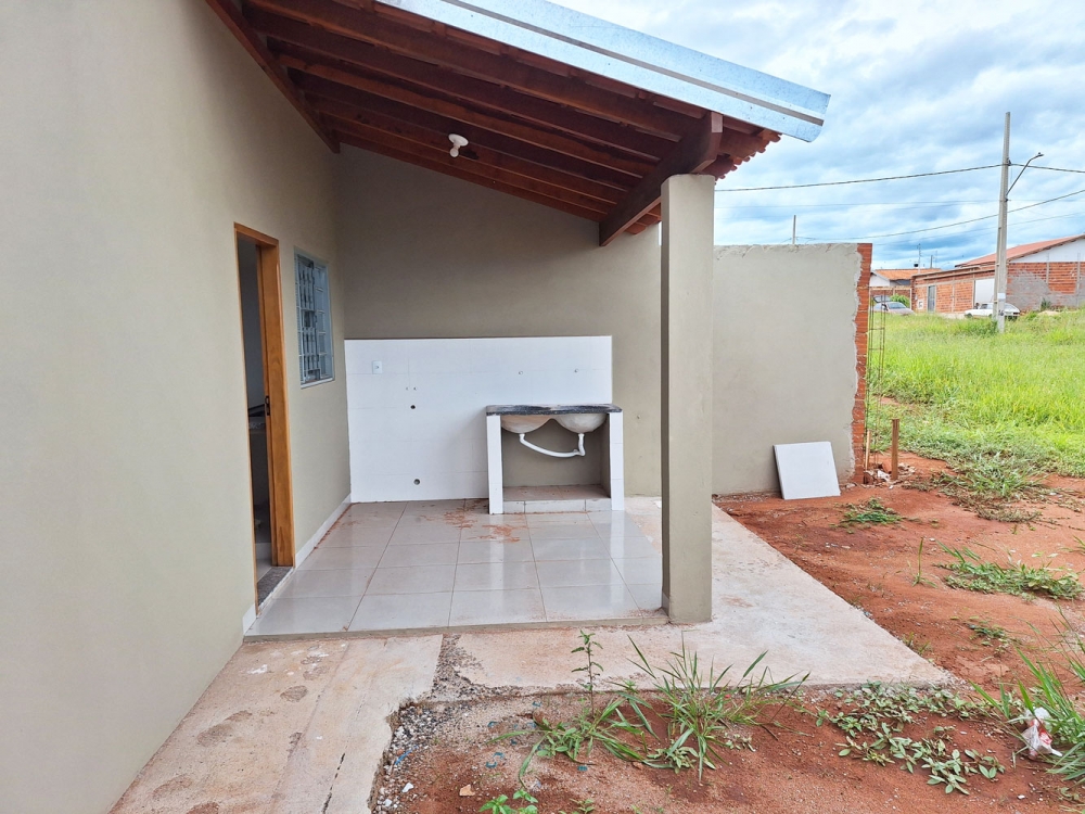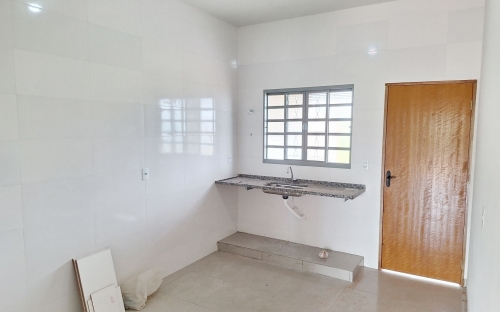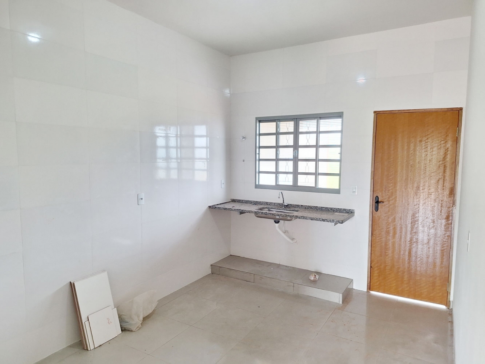 Casa nova com 2 quartos amplos, sala, cozinha, área de serviço e quintal.