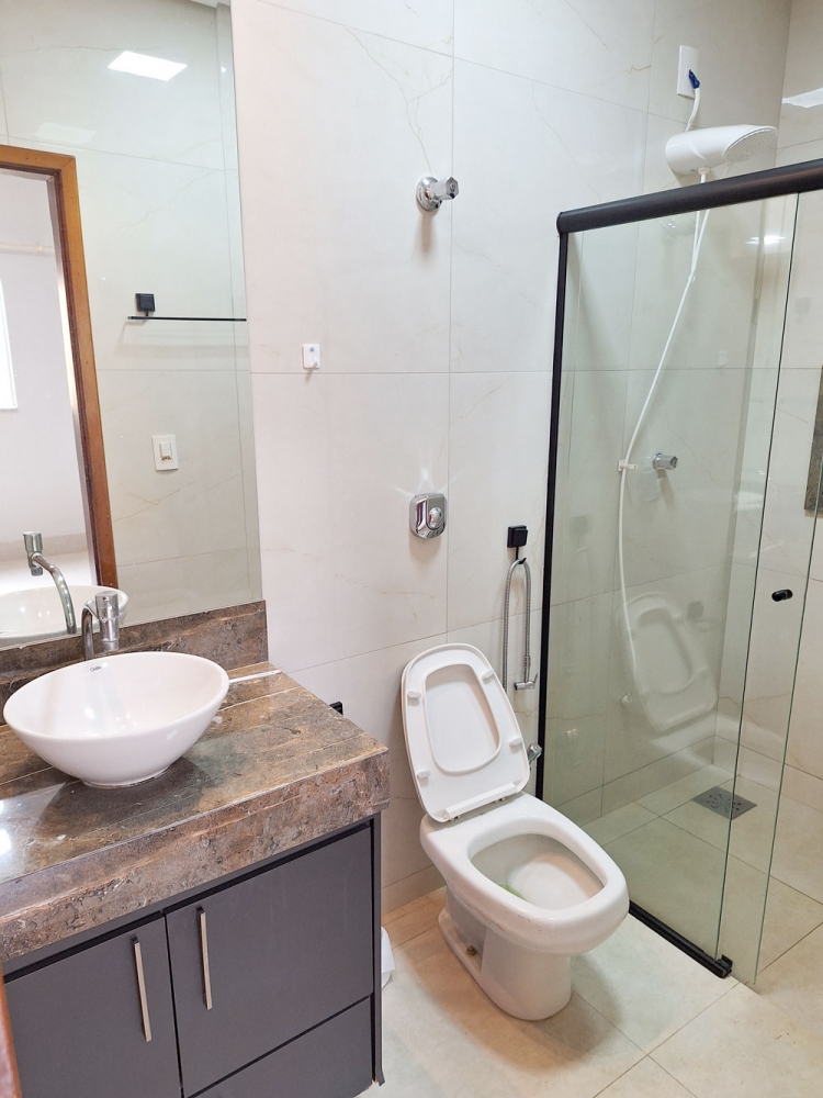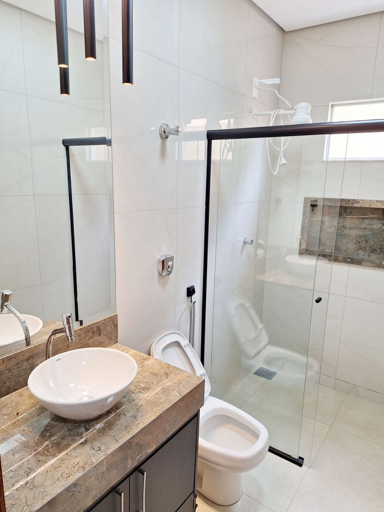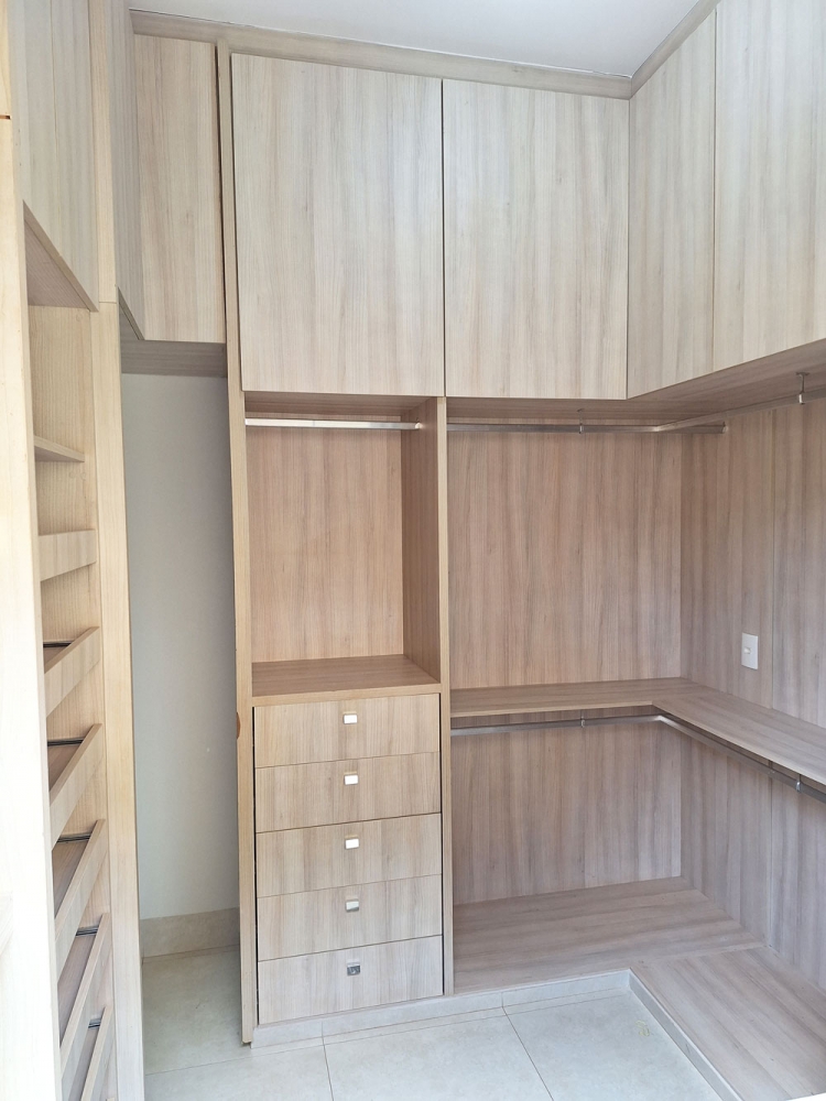 Casa com móveis planejados nos quartos, banheiros e cozinha.
